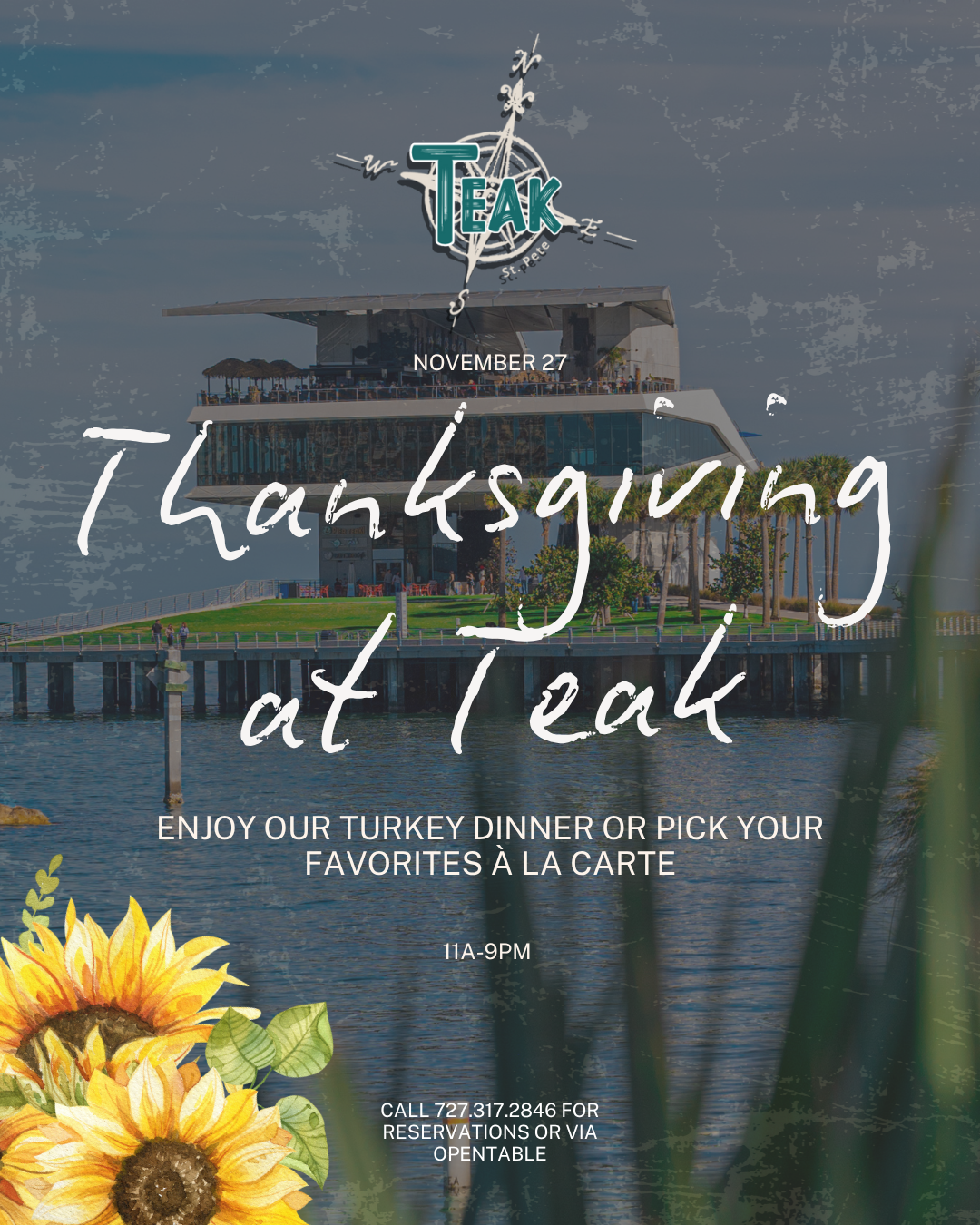 Celebrate the day your way with a choice between our classic Turkey Dinner Special, complete with all the holiday fixings, or your favorite Teak menu staples.